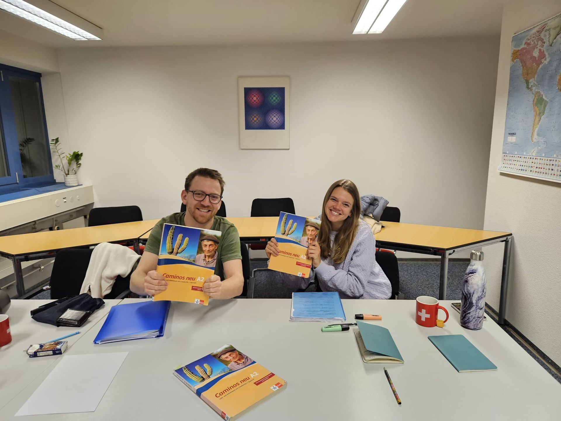 En este momento, Sarah y Lorenz están leyendo su segunda novela literaria en español. Escucharlos hablar durante los primeros diez minutos de la clase sobre el capítulo que han leído me llena de orgullo. Me emociona observar cómo cada uno interpreta el texto, cómo reflexionan y se atreven a ir más allá. Los animo constantemente a usar estructuras más complejas, porque siempre les recuerdo: